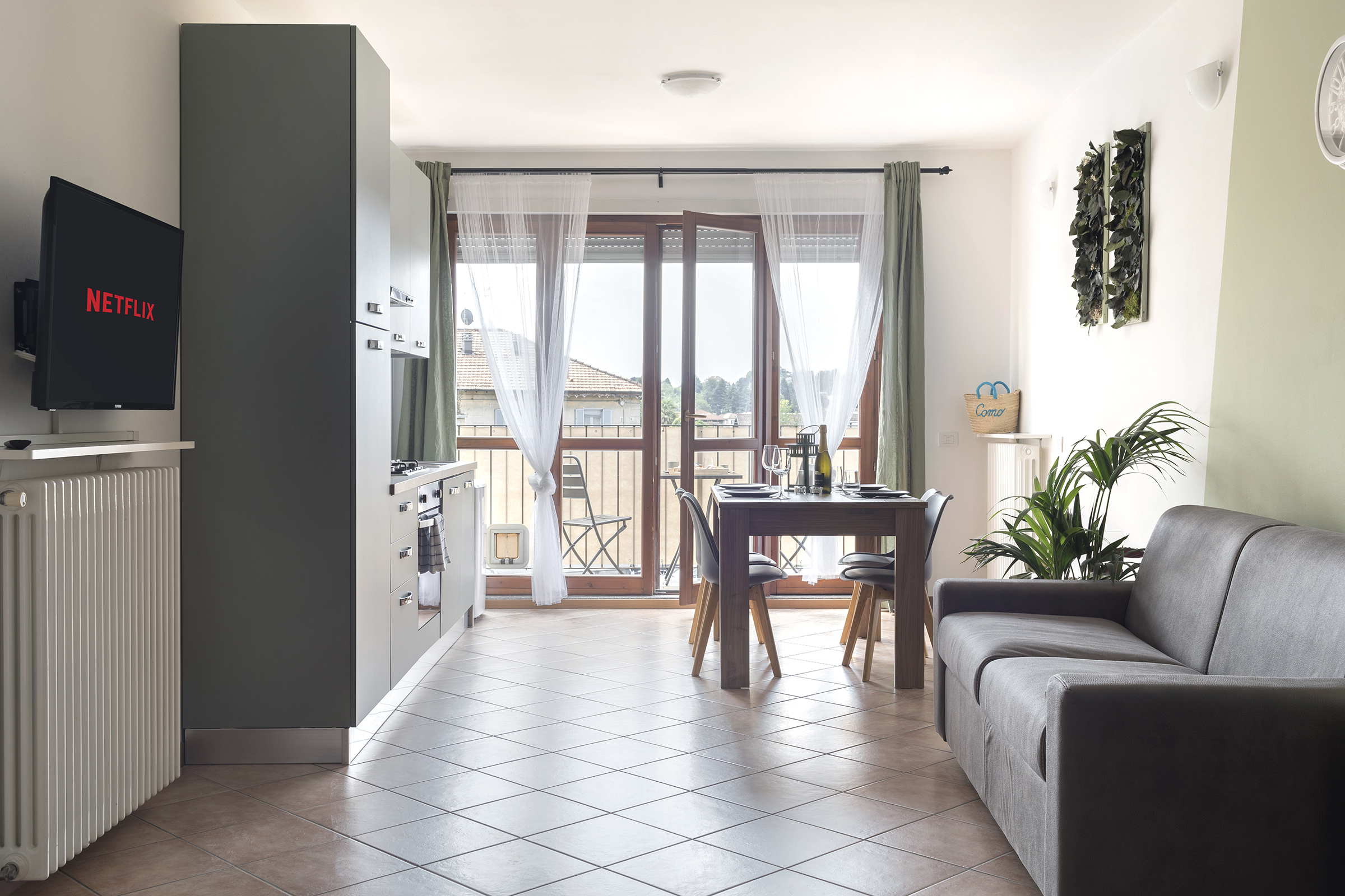 A delightful flat located in the heart of Como, in the Camerlata area. This cozy accommodation, meticulously maintained by owner Tita, who is passionate about floral design, offers a haven of tranquillity and comfort to its guests. Every corner of this home reflects Tita's passion and love for floral design, with elegant plants and panels of stabilized moss and leaves adding a touch of nature to the ambiance.
