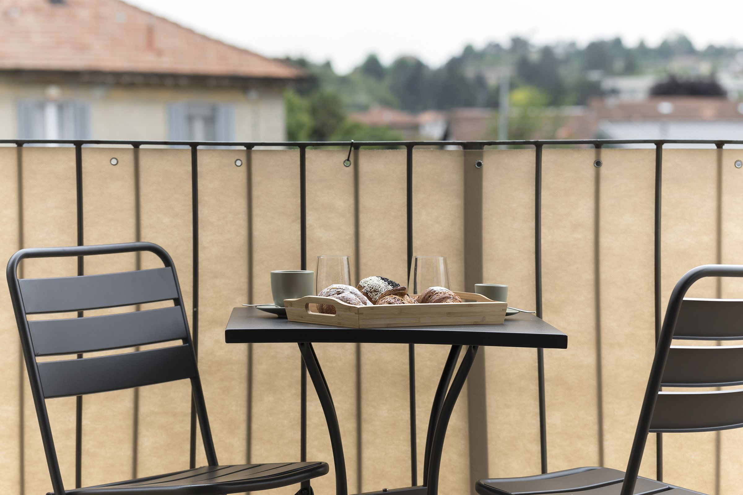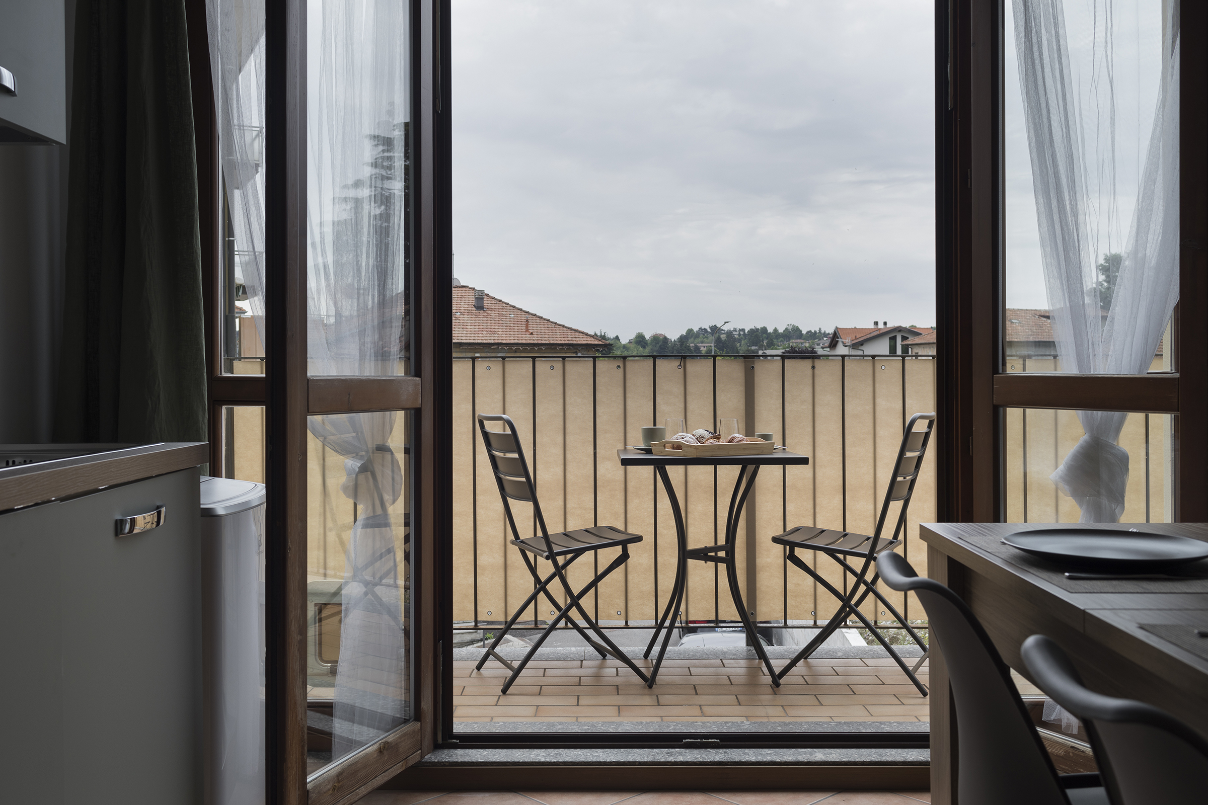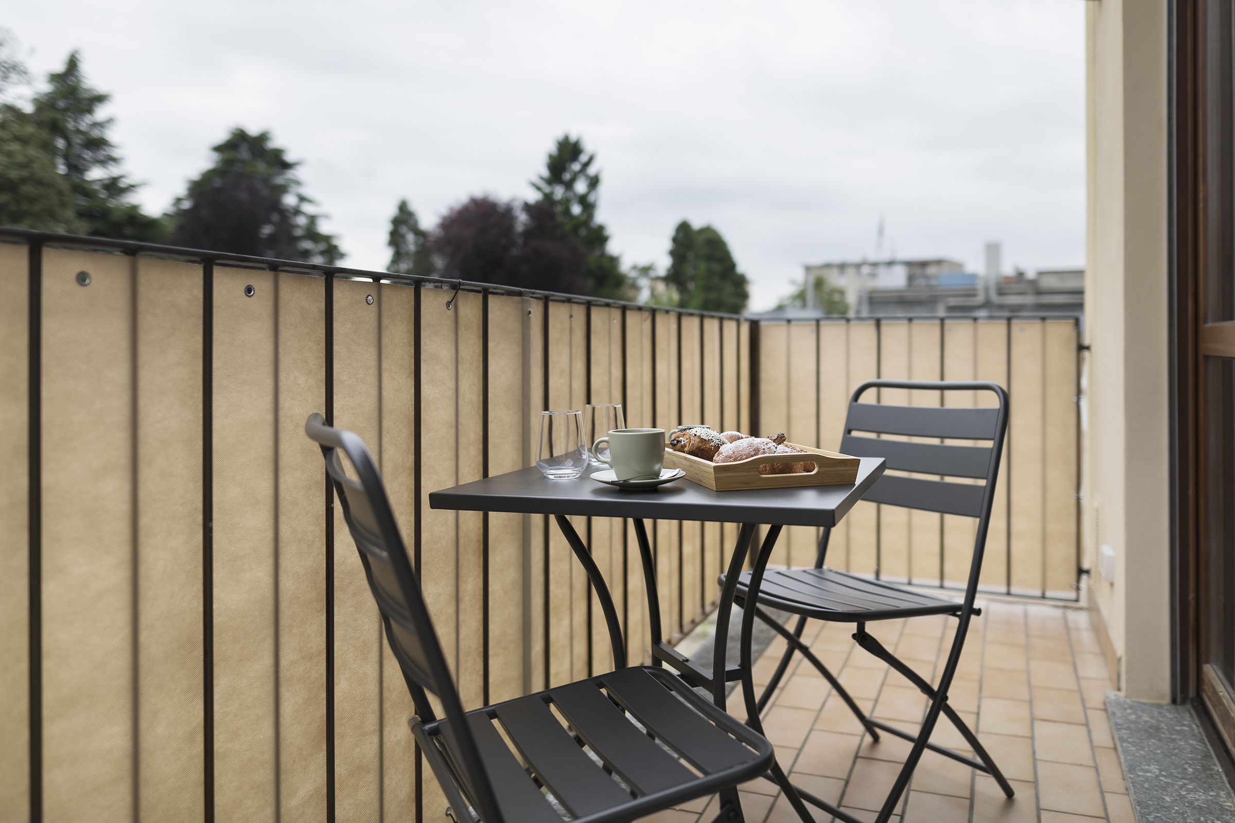 The private balcony is furnished with a table and chairs, ideal for enjoying an outdoor breakfast or a glass of wine at sunset. The balcony offers a corner of serenity where you can relax, read a book, or simply admire the view of the quiet Camerlata area.