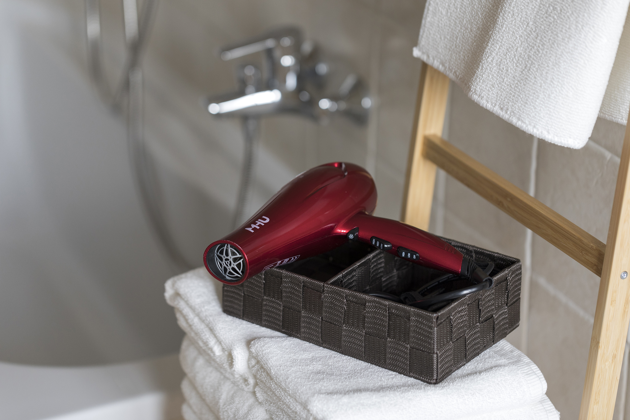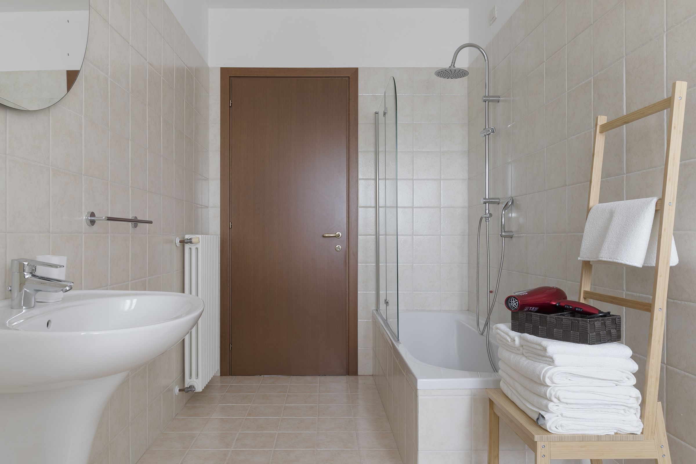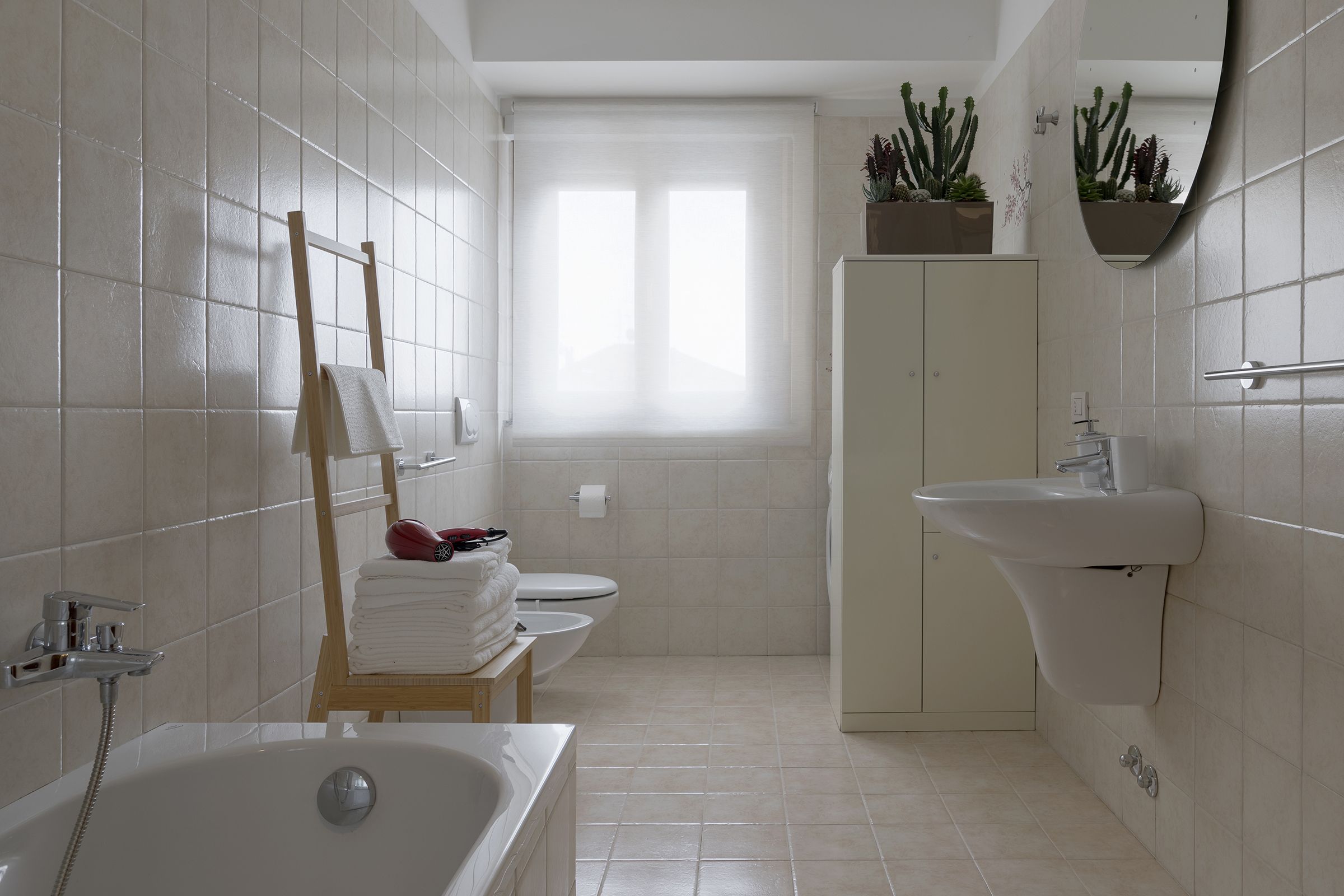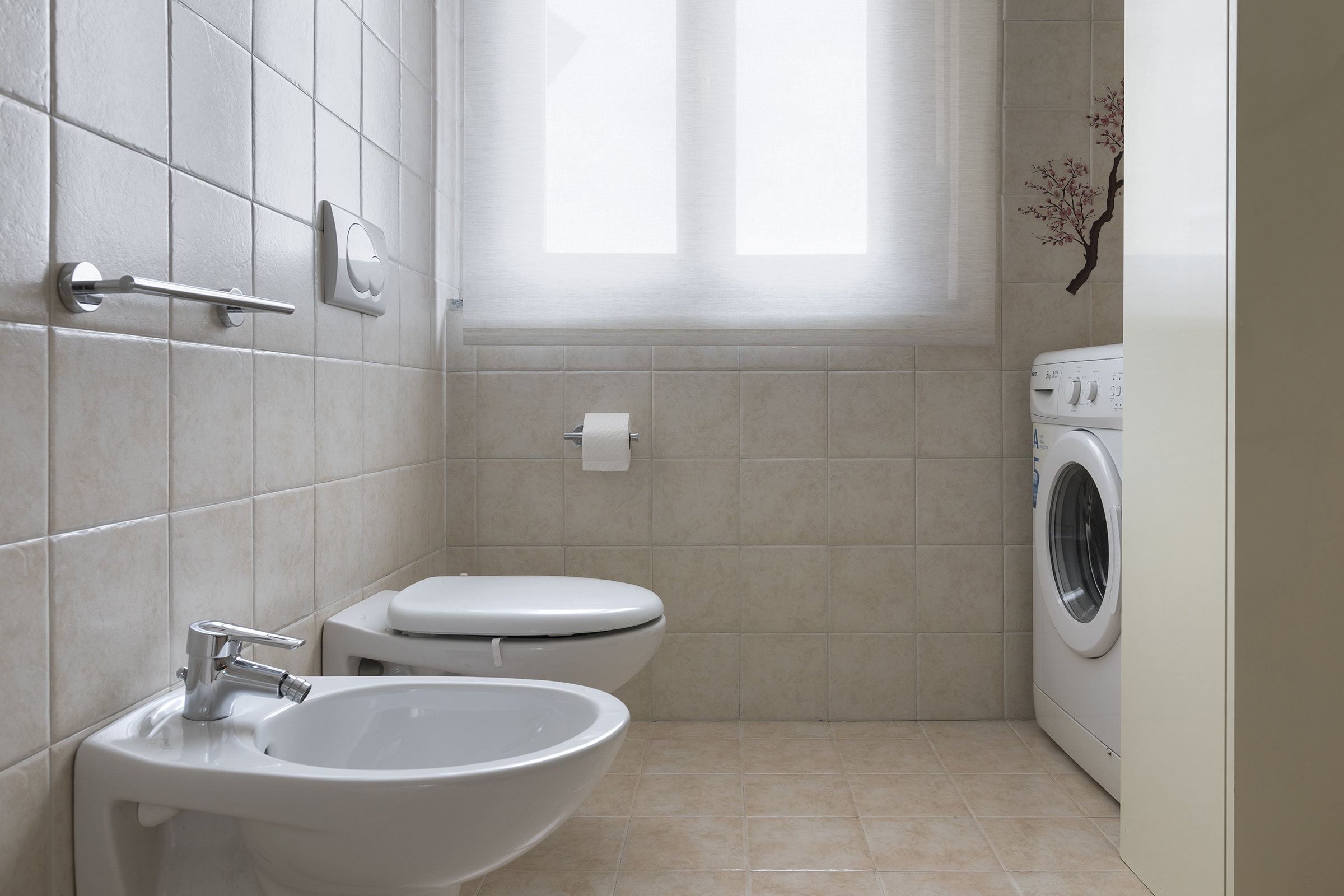 The bright and spacious bathroom has all the necessary comforts, including a bidet and washing machine, perfect for longer stays.